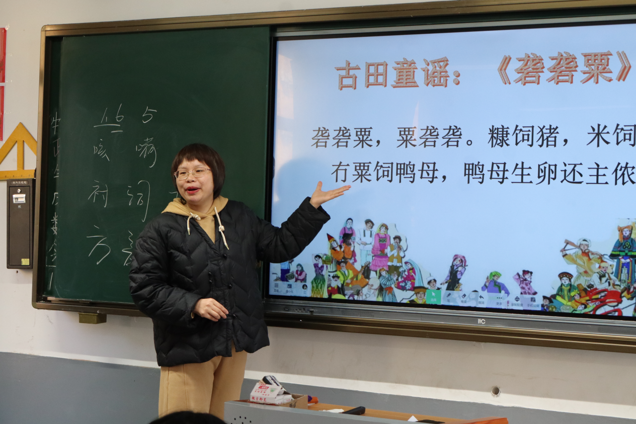以“听辨-赏析-创编”为主线,让学生分析民歌旋律、节奏特点,尝试改编简易民歌片段,提升音乐表现与创造能力,上课主持人任楚薇。