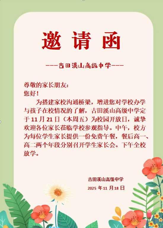这份邀请,承载着学校主动开放、坦诚沟通的诚意,也寄托了家校携手、共促孩子成长的殷切期望。
