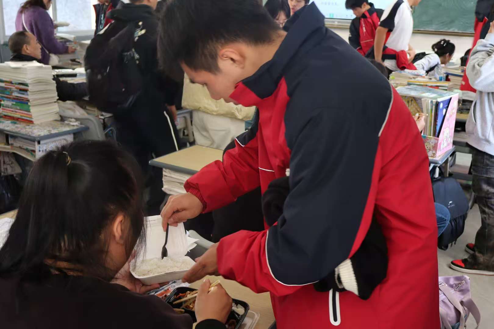 中午,学校为每一位到校的家长准备了一份免费的午餐。 家长们走进教室,与自己的孩子同桌共餐。这一刻,教室里充满了温馨与感动。饭菜的香味与亲情的温暖交融,简单的午餐成了一次难得的亲子陪伴体验,拉近了彼此的距离,场面格外动人。