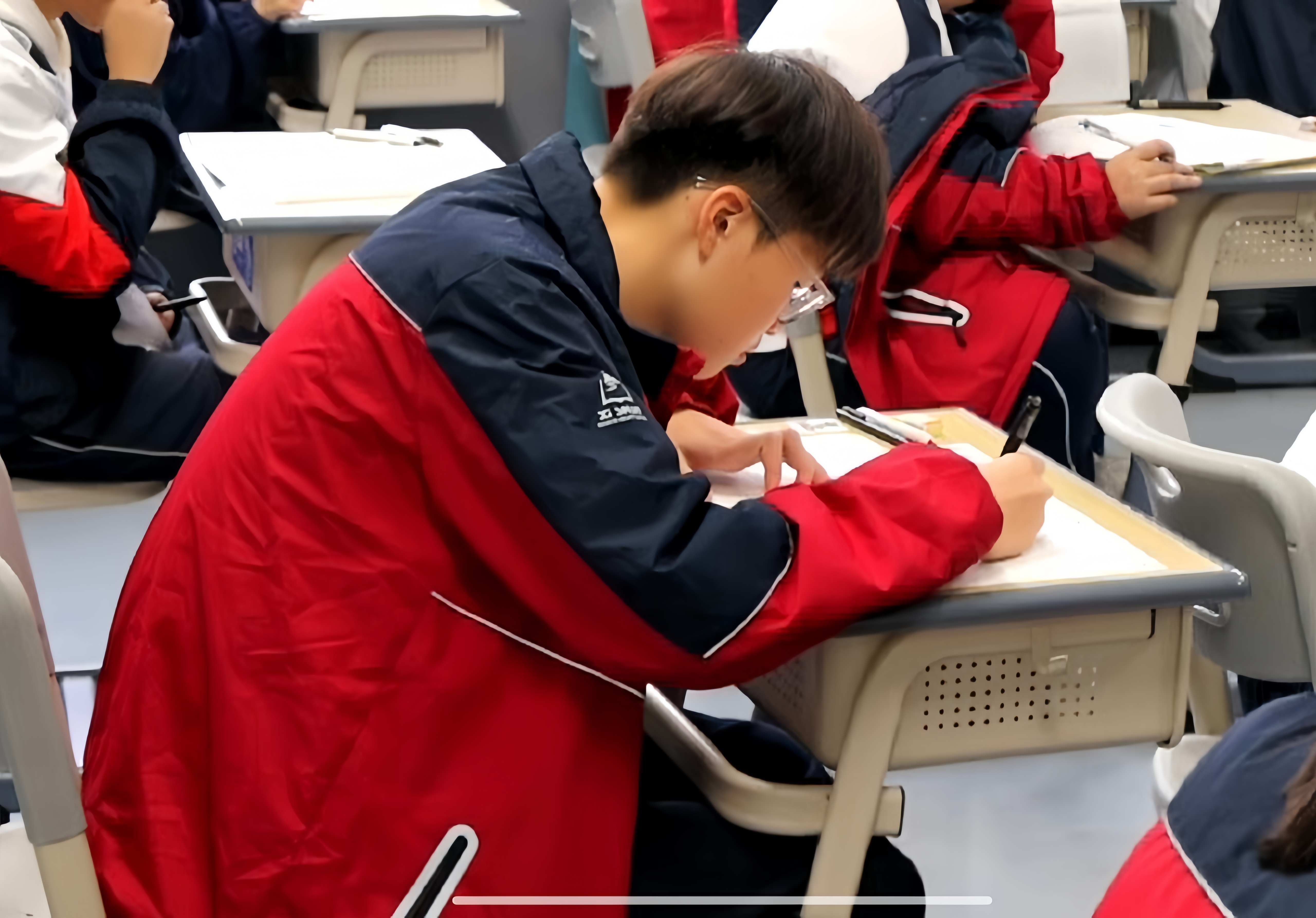 教室里只剩钟表滴答和笔尖摩挲纸面的声响;有人皱着眉演算,草稿纸写满半页又翻向新的一面;有人写完后轻轻按了按笔帽,低头开始逐题检查;监考老师的目光里是对“专注”的无声肯定——这场考试,“认真”是最亮的底色。