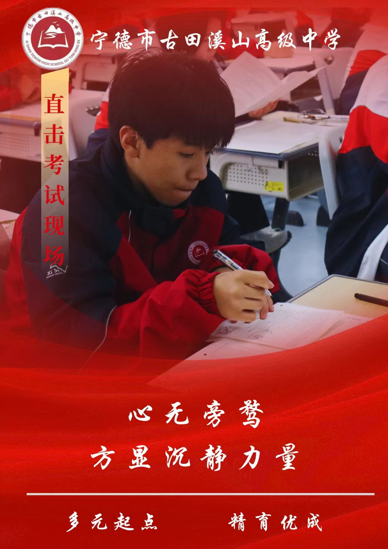 周一的升旗仪式上,学生代表苏妍丹的动员讲话裹着秋风落在每颗心上:“让我们以诚信为笔,以努力为墨,在半期考试的答卷上,书写真实的自我,绘就青春最亮丽的底色!”
