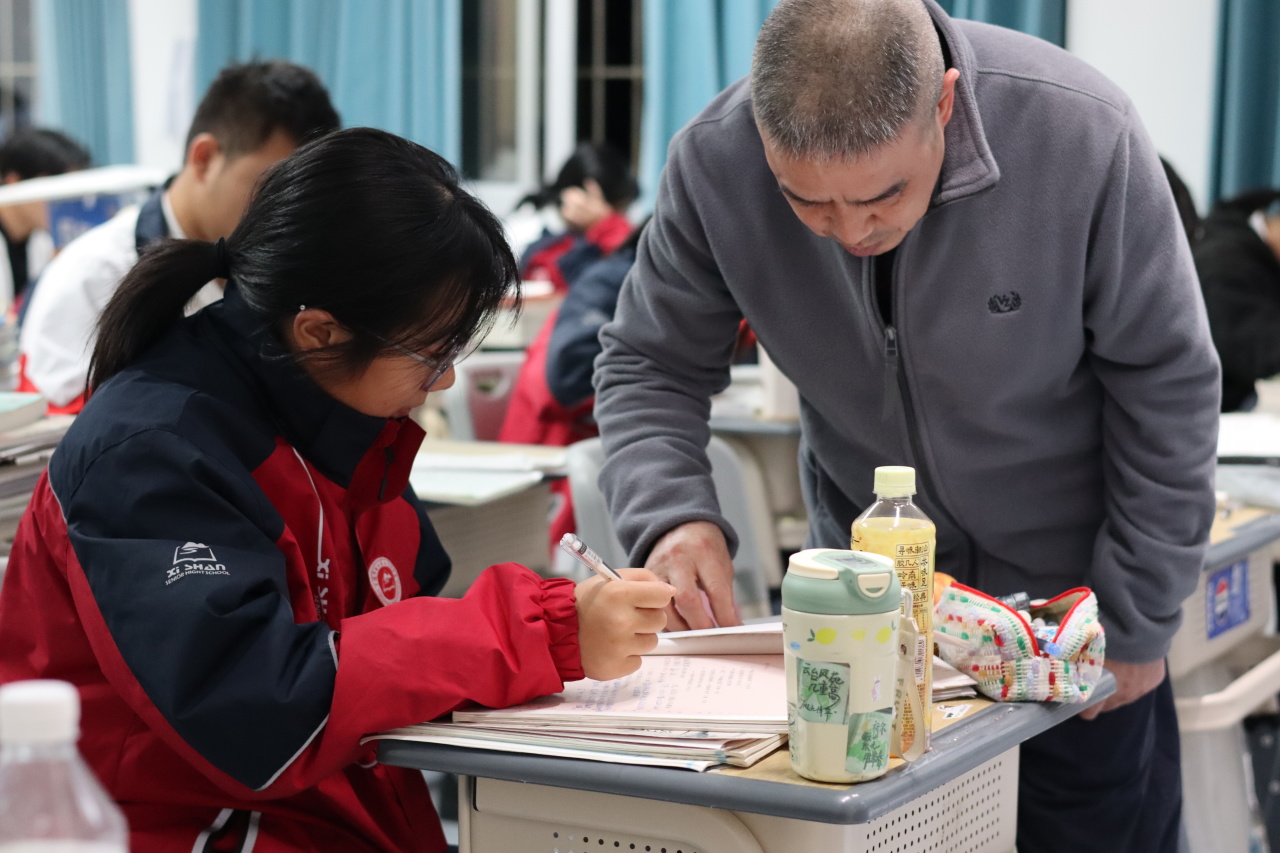 班主任来回巡走,看到皱眉的同学便停下脚步,递上一张写着解题技巧的便签,无声的鼓励比话语更有力量。