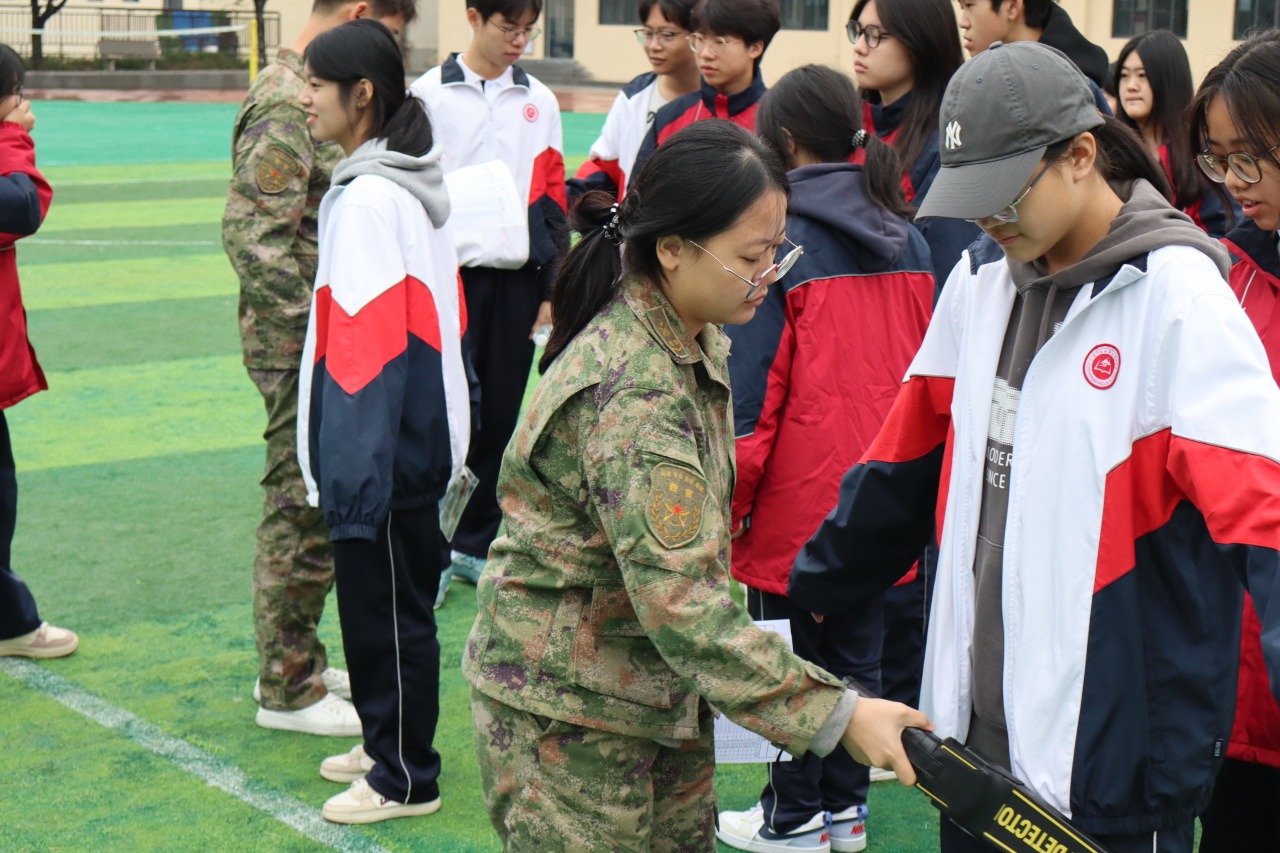 考场外的队伍里,没人慌慌张张:大家攥着透明文具袋,有序入场,候考时还在认真复习知识点——连“等待”都成了复习的延伸。学生配合教官完成考试入场的安检流程,严肃考场纪律。
